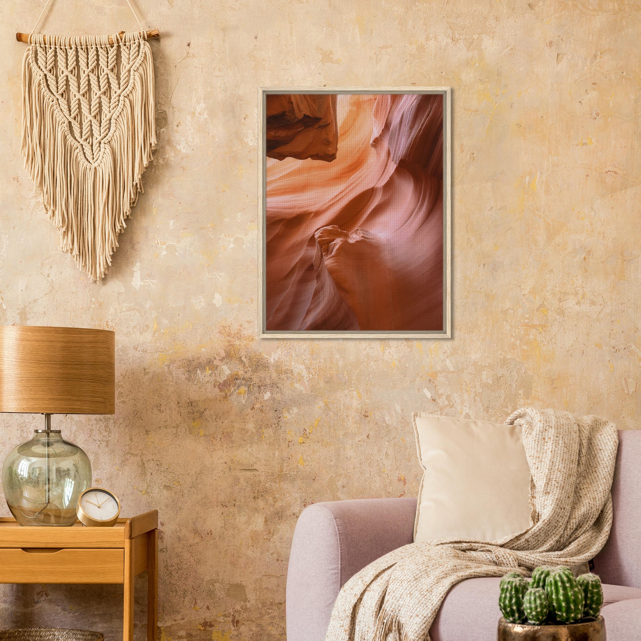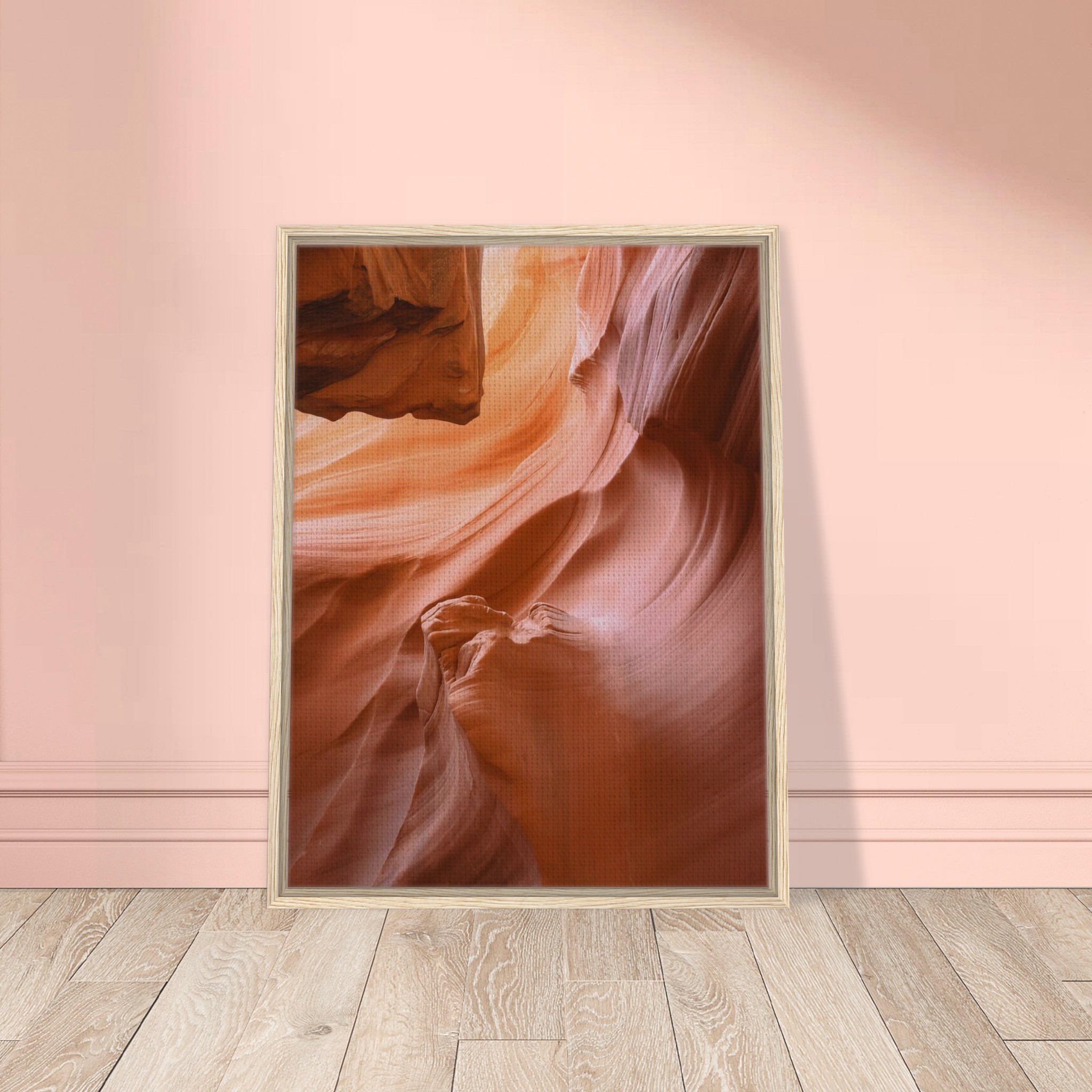 As wall art, Canyon Flow brings warmth and natural beauty into a space. The rich desert tones pair beautifully with neutral interiors, modern design styles, and natural materials like wood, stone, and linen. Whether displayed in a living room, office, or entryway, the image adds depth, movement, and a sense of quiet wonder inspired by the American Southwest.