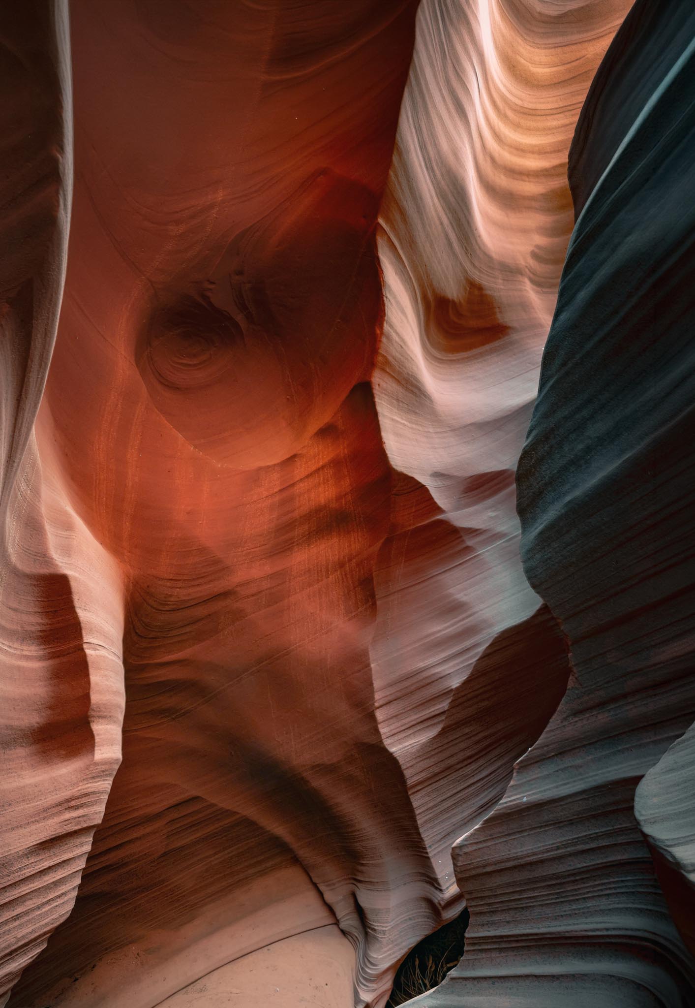 Canyons Gaze explores the sculpted sandstone walls of a Utah slot canyon, where wind and water have carved flowing curves into the rock over thousands of years. The natural patterns and warm earth tones create a quiet moment of abstraction within the desert landscape, where the canyon walls appear almost alive in shifting light and shadow.