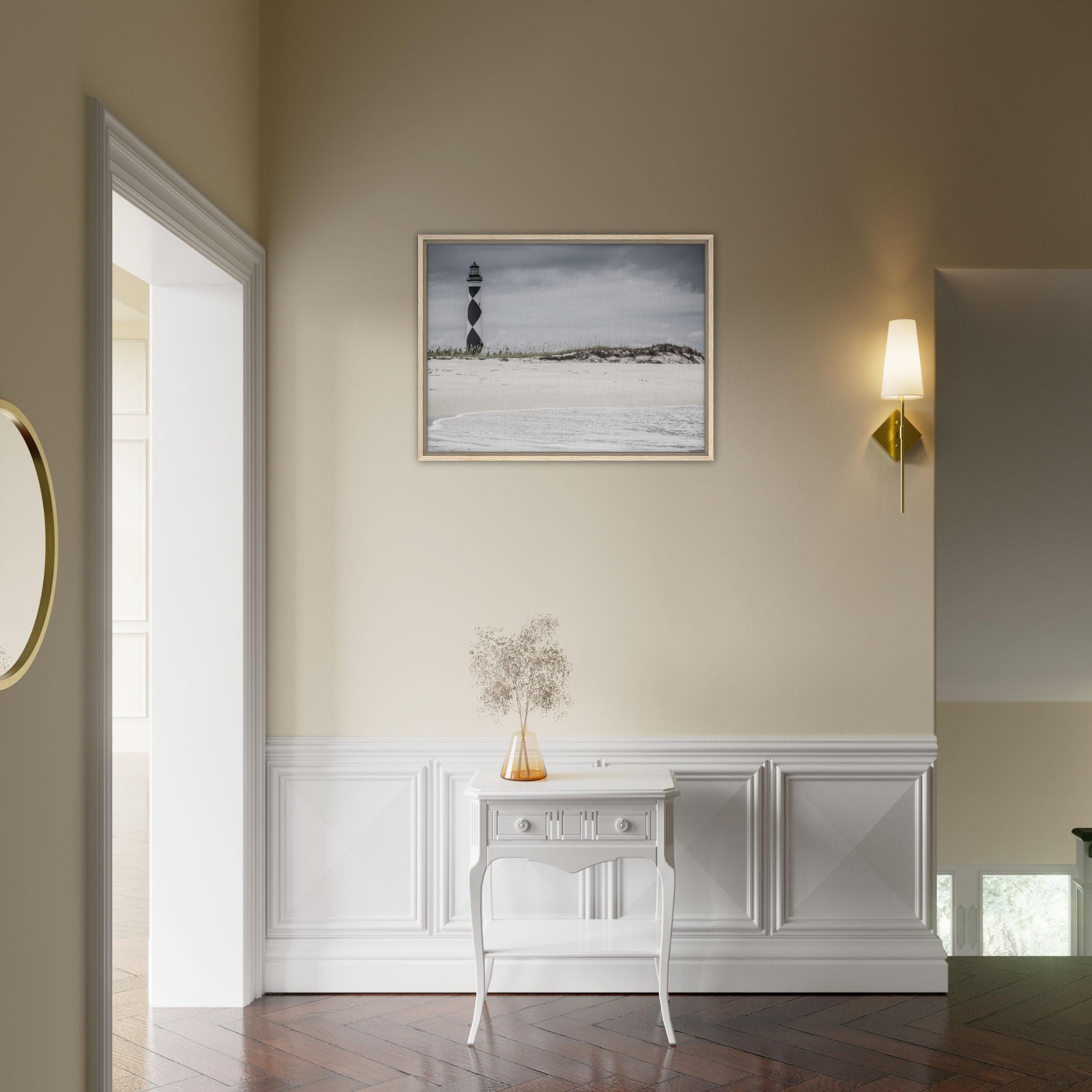 As wall art, Sentinel of the Shore brings a calm coastal presence into a room. The neutral tones and open composition pair beautifully with modern interiors, coastal-inspired spaces, and relaxed living environments. Its quiet mood and timeless subject make it an ideal centerpiece for living rooms, bedrooms, and beach homes alike.